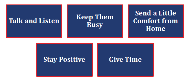 Parents can talk to their child, stay in touch, send small comfort items, and motivate them with love and care.