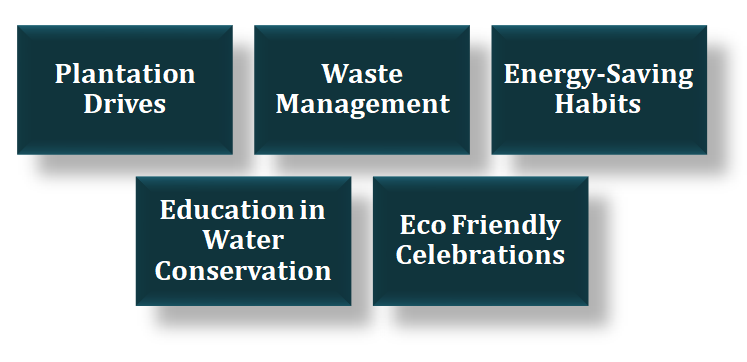 By planting trees, saving energy and water, managing waste, and teaching eco-friendly habits.